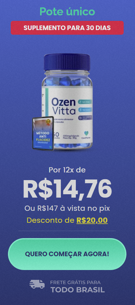 Se essa resposta não vem fácil, talvez esteja na hora de buscar um novo apoio. OzenVitta foi desenvolvido para quem deseja apoiar o processo de emagrecimento, melhorar a relação com o próprio corpo e resgatar o bem-estar no dia a dia, de forma consciente e equilibrada. Uma fórmula pensada para complementar hábitos saudáveis, ajudando você a manter o foco, a constância e a confiança — refletindo não só no corpo, mas também na autoestima e na forma como você se sente consigo mesmo.